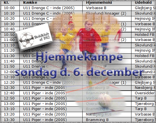 Hjemmekampe Søndag d. 6. december